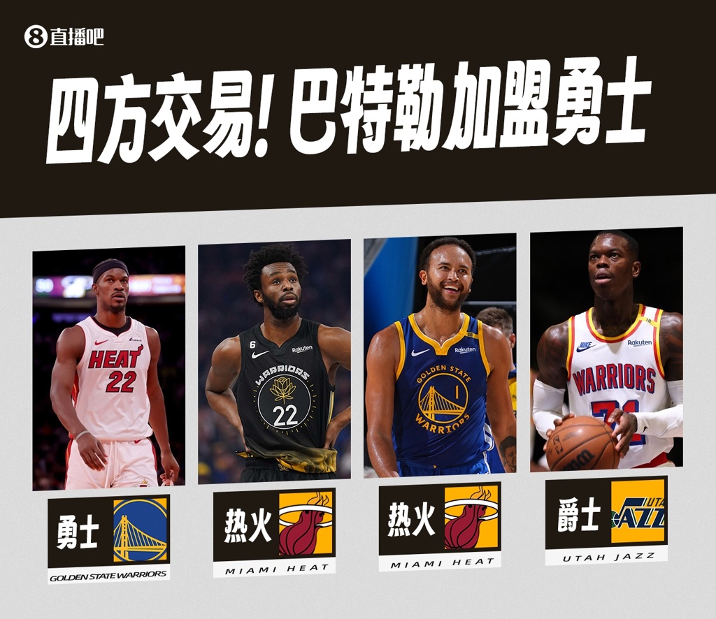 Shams马上跟进报道,勇士在一笔四方大交易中得到巴特勒,送出维金斯、施罗德、李凯尔和1个前10保护的首轮签!
