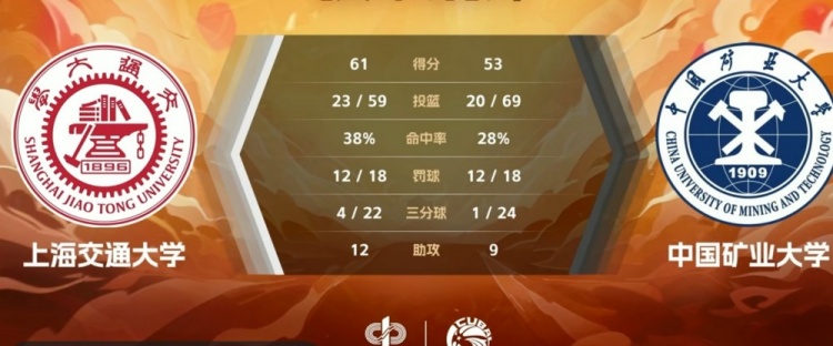 末节决战,上海交大率先发力,多点开花完成7-0的攻击波强势反超,中国矿大连续造成杀伤通过罚球打破得分荒,双方争夺陷入白热化,关键时刻张安琪内外开花连得5分并完成抢断,率队打出8-0杀死比赛。最终,上海交大62-53力克中国矿大。