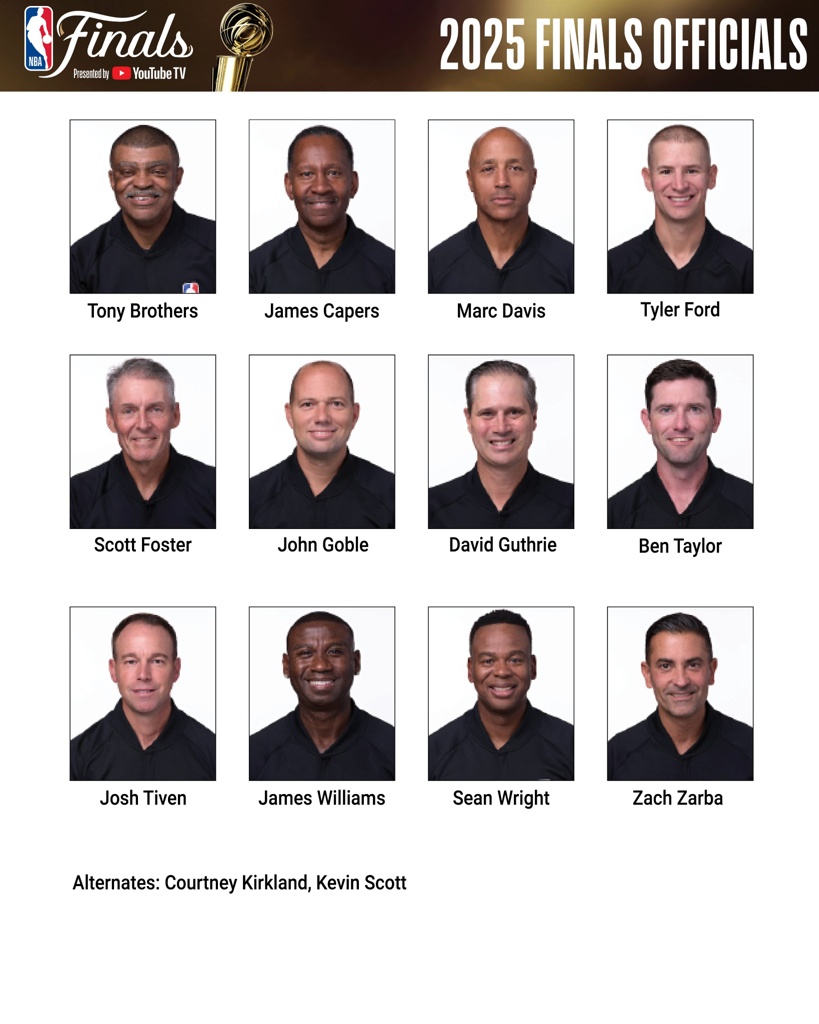 06月04日讯 NBA官方今日在纽约公布了今年总决赛的裁判员名单,名单从东西决的20人精简到了12个人,名单具体是: