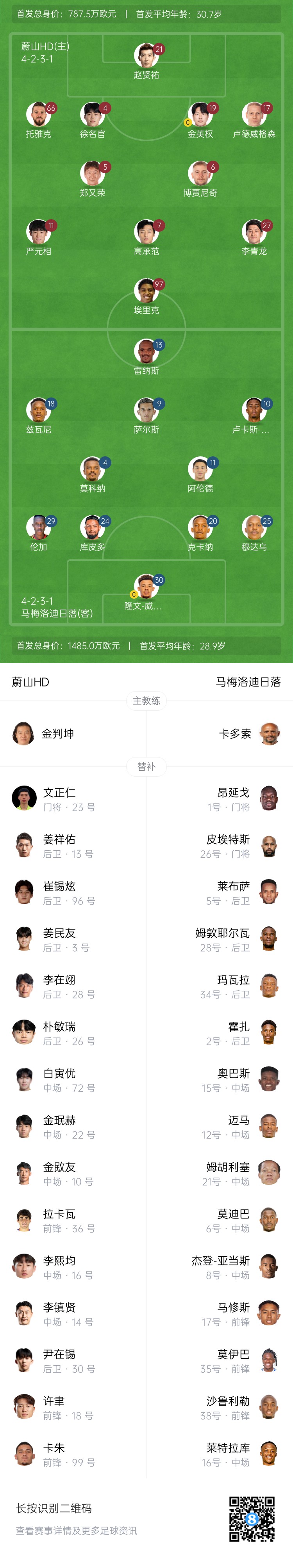 蔚山HD替补:23-文正仁、3-姜民友、13-姜祥佑、26-闵秀园、28-李在翊、96-乔锡闲、10-金敃友、14-李镇贤、22-金珉赫、72-白演优、16-李熙均、18-许聿、30-尹在锡、36-拉卡瓦、99-卡朱