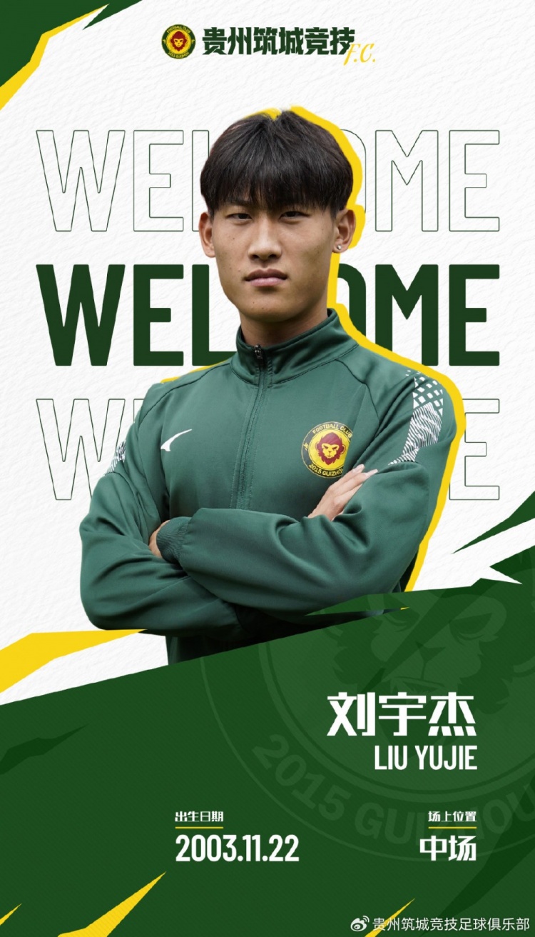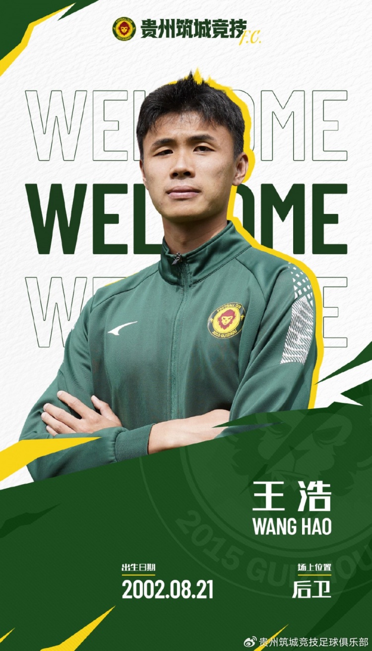 6月26日讯 贵州筑城竞技官方宣布,申花球员刘宇杰、王浩租借加盟。