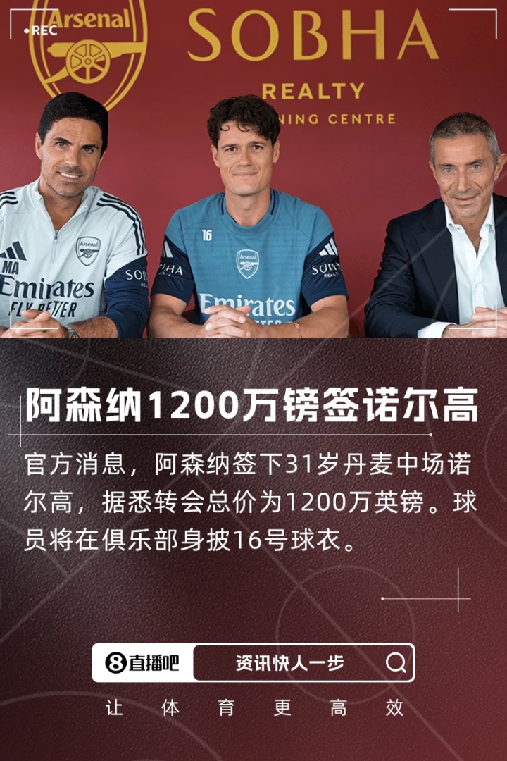 此前,阿森纳已官宣500万英镑签下前切尔西门将凯帕和6500万欧元签下前皇社中场祖比门迪两笔引援,加上总价1200万镑的诺尔高,阿森纳在这个转会窗已确定引进三名新援。