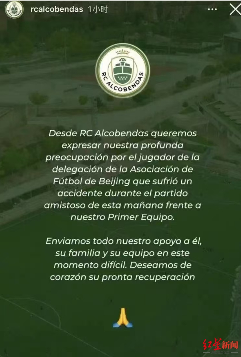 据郭嘉璇哥哥提供的截图显示,比赛对手RC阿尔科文达斯足球俱乐部此前曾在社交媒体上对此事发声,表达“严肃关切”,但目前该俱乐部社媒已经无法找到该声明。北京时间2月11日,红星新闻记者曾致电该俱乐部,对方确认有“比赛中球员受伤”事件,但称对球员后续的状况不了解。记者2月12日和13日再度致电时,该俱乐部电话已无人接听。